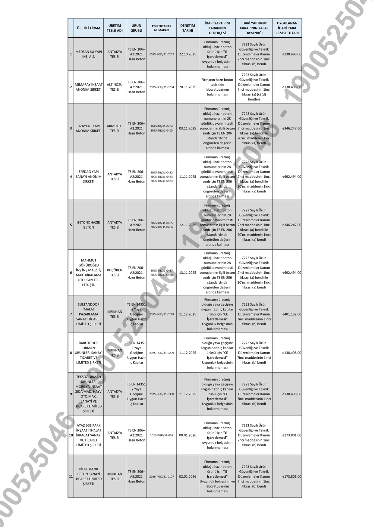 7223 Sayılı Ürün Güvenliği Ve Teknik Düzenlemeler Kanunu kapsamında alınan idari yaptırım kararları